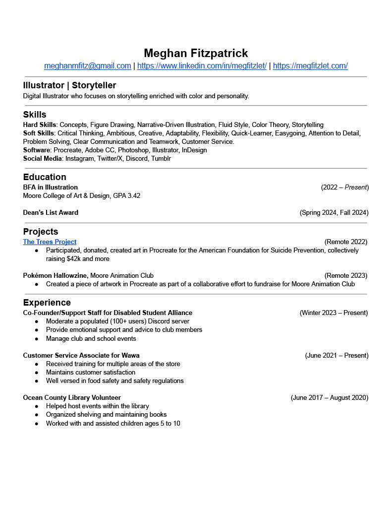 I'm currently a junior illustration major attending Moore College of Art and Design in Philadelphia. I'm a big fan of anything with color and I fully intend on injecting as much whimsy into my artwork (and life) as possible! I tend to focus more on overall worldbuilding and character design, but really, anything goes! I'm just here to have fun and pursue a dream :]Here you will find art (the fun and the school kinds — usually it's both!) and other miscellaneous things like contact info and socials and emails and whatever. If any of this sounds right up your alley and you want me on your team, I hope to hear from you soon! Happy browsing :-)(and if you're wondering, the little star guy's name is Ette.)
